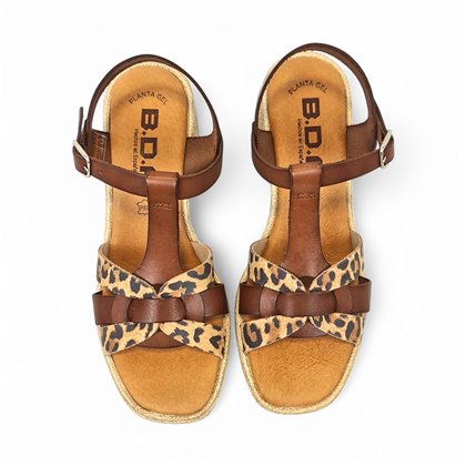 Sandalia de piel cómoda BIO 2 hebillas Leopardo