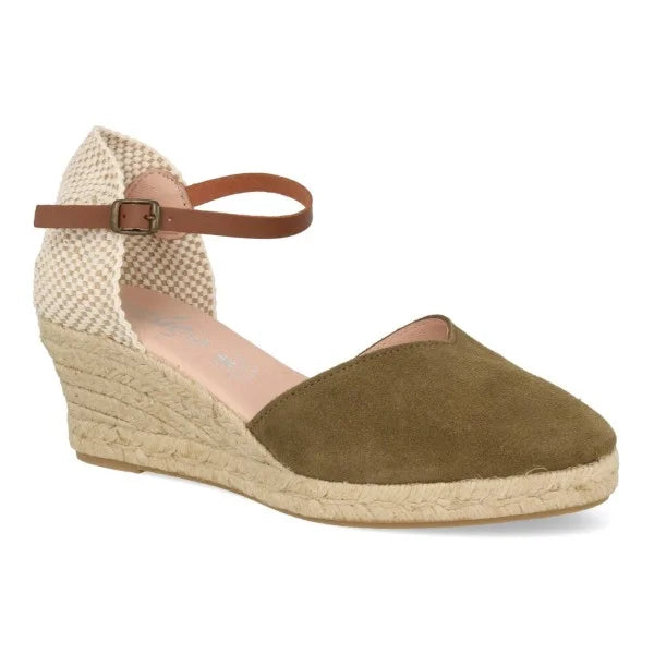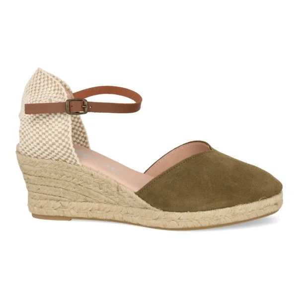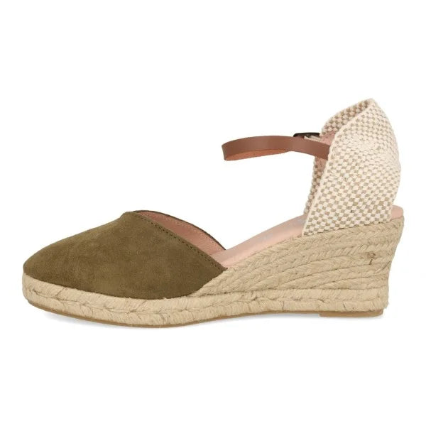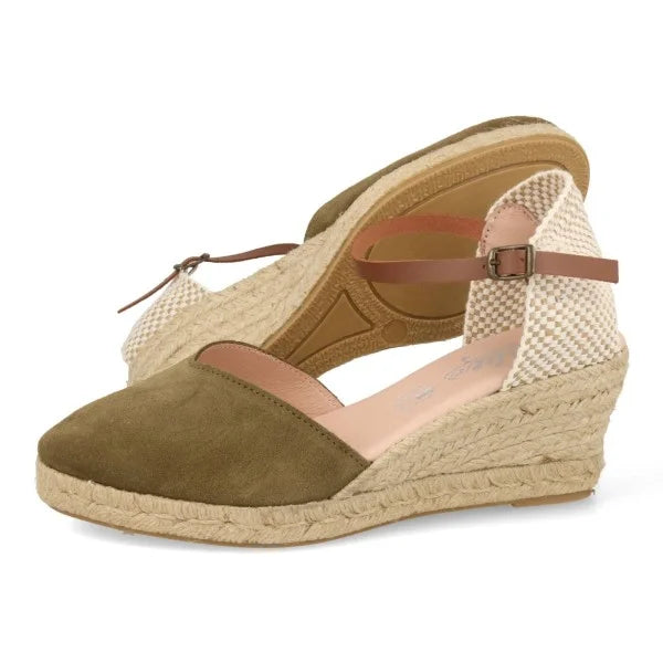 Cuñas Esparto Mujer piel serraje caqui
