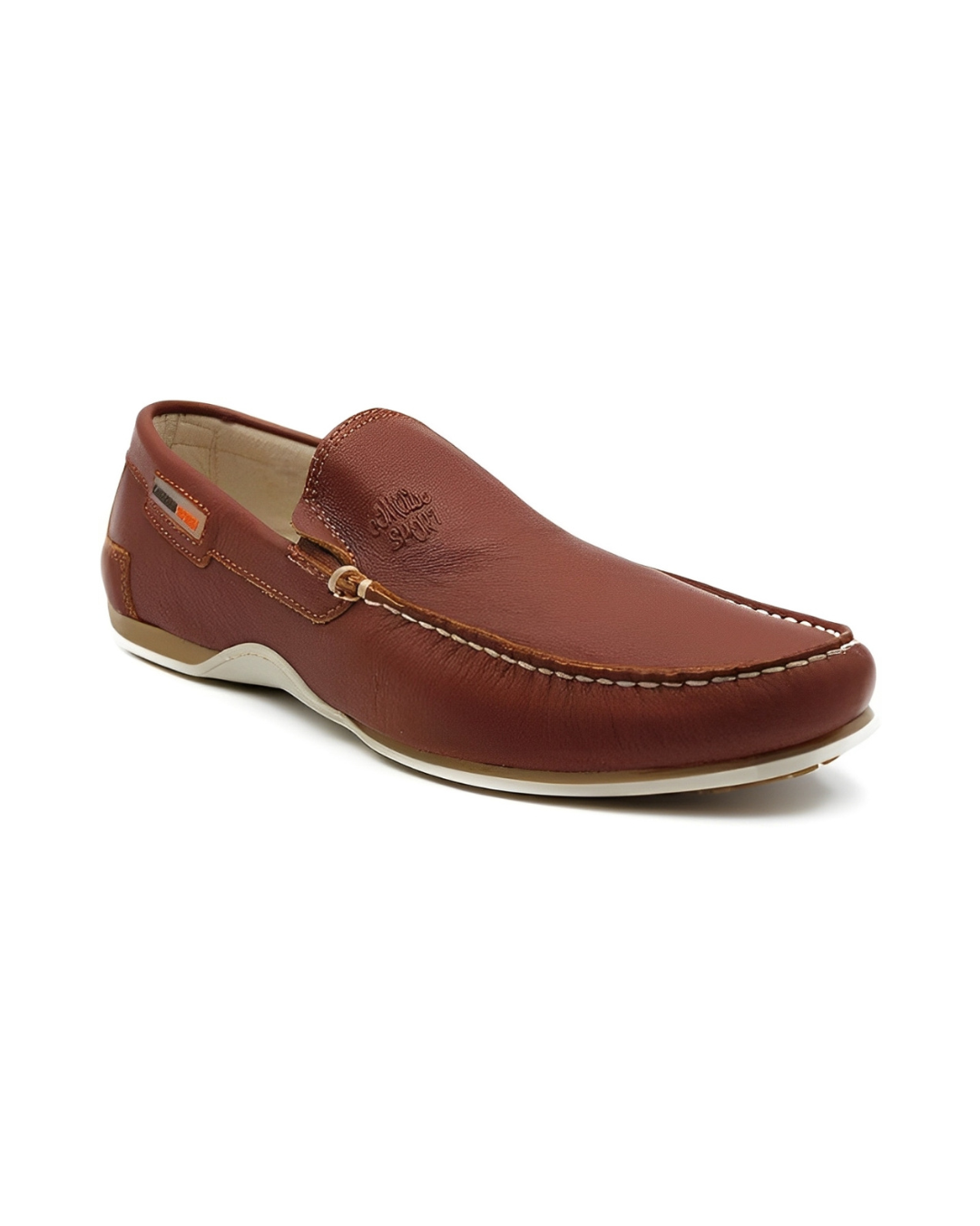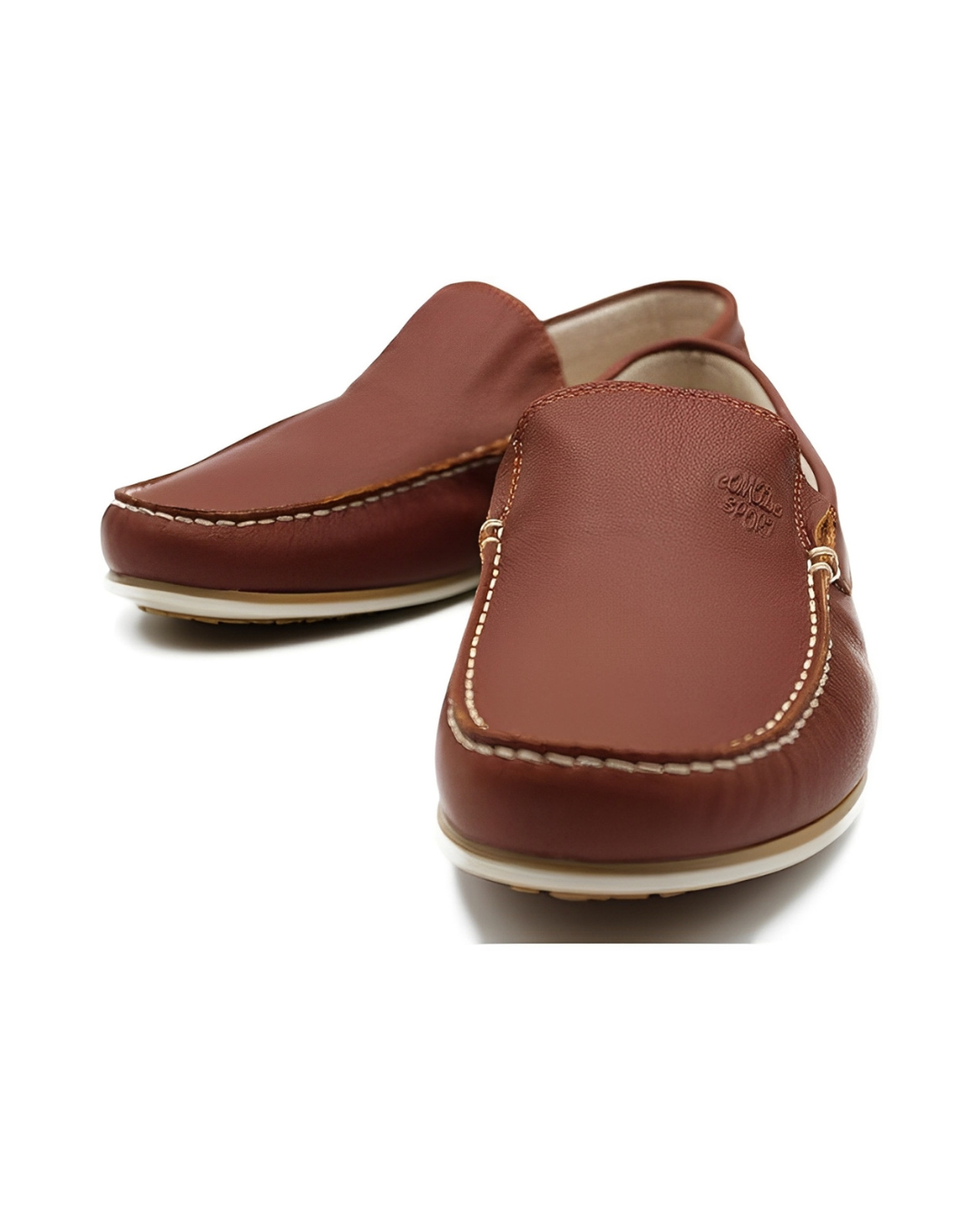 Este zapato de piel en acabado ante combina elegancia y comodidad. Un mocasín ligero con diseño artesanal, ideal como zapato de calidad para el día a día. Su suela de goma antideslizante ofrece un ajuste seguro, convirtiéndolo en un zapato cómodo y versátil. Si buscas un calzado sofisticado, este zapato de piel en tono cuero es la elección perfecta.