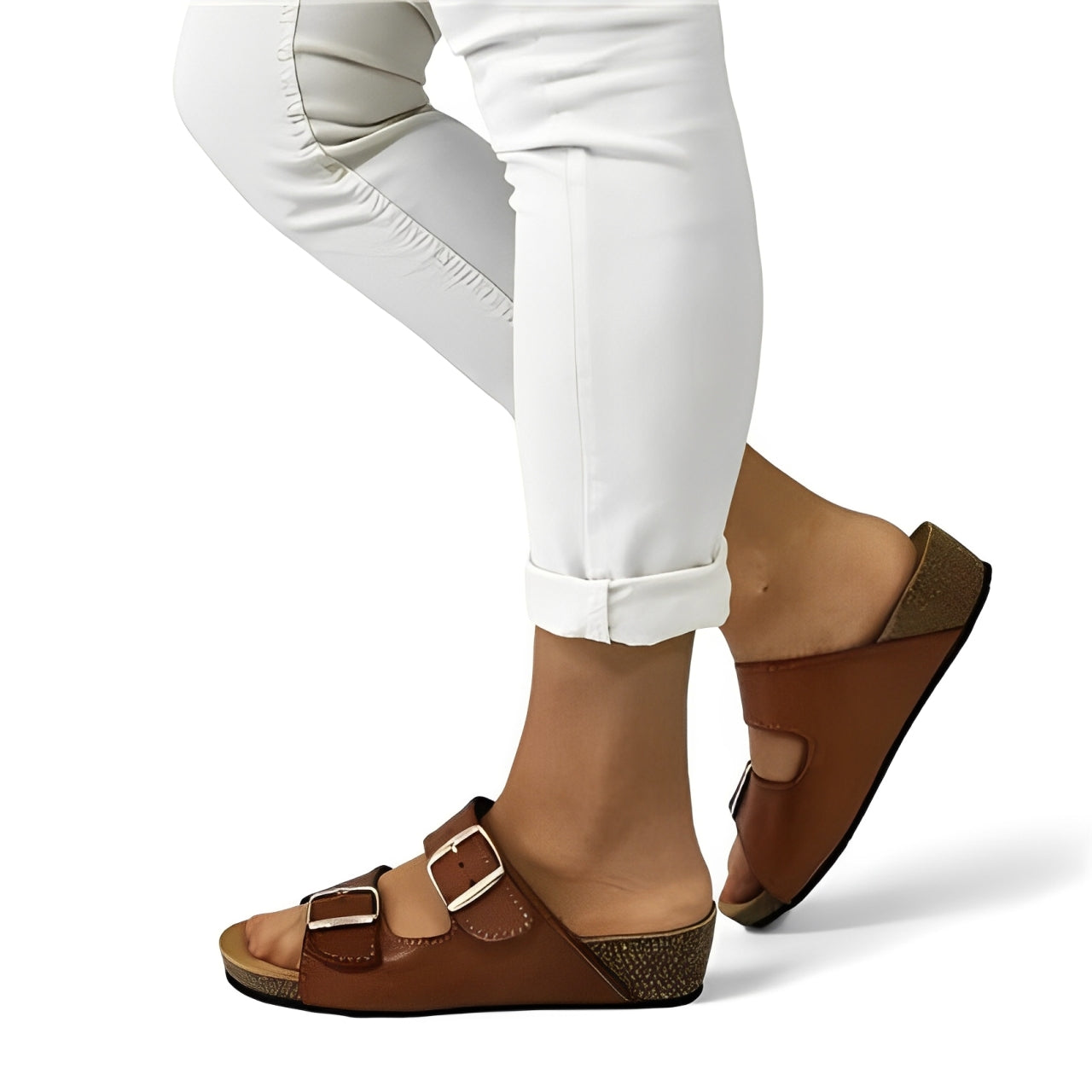 Sandalia Cuña de piel cómoda BIO 2 hebillas cuero