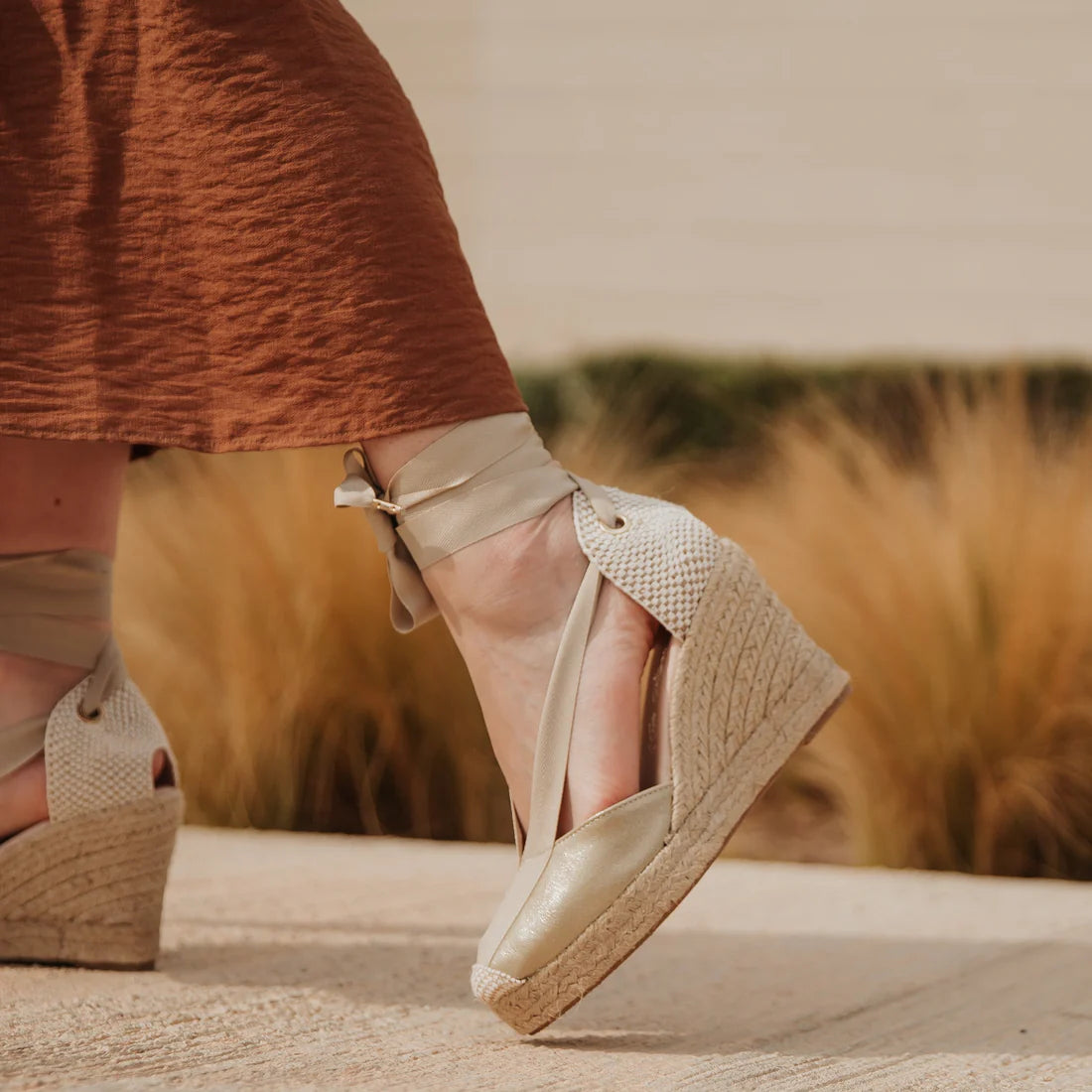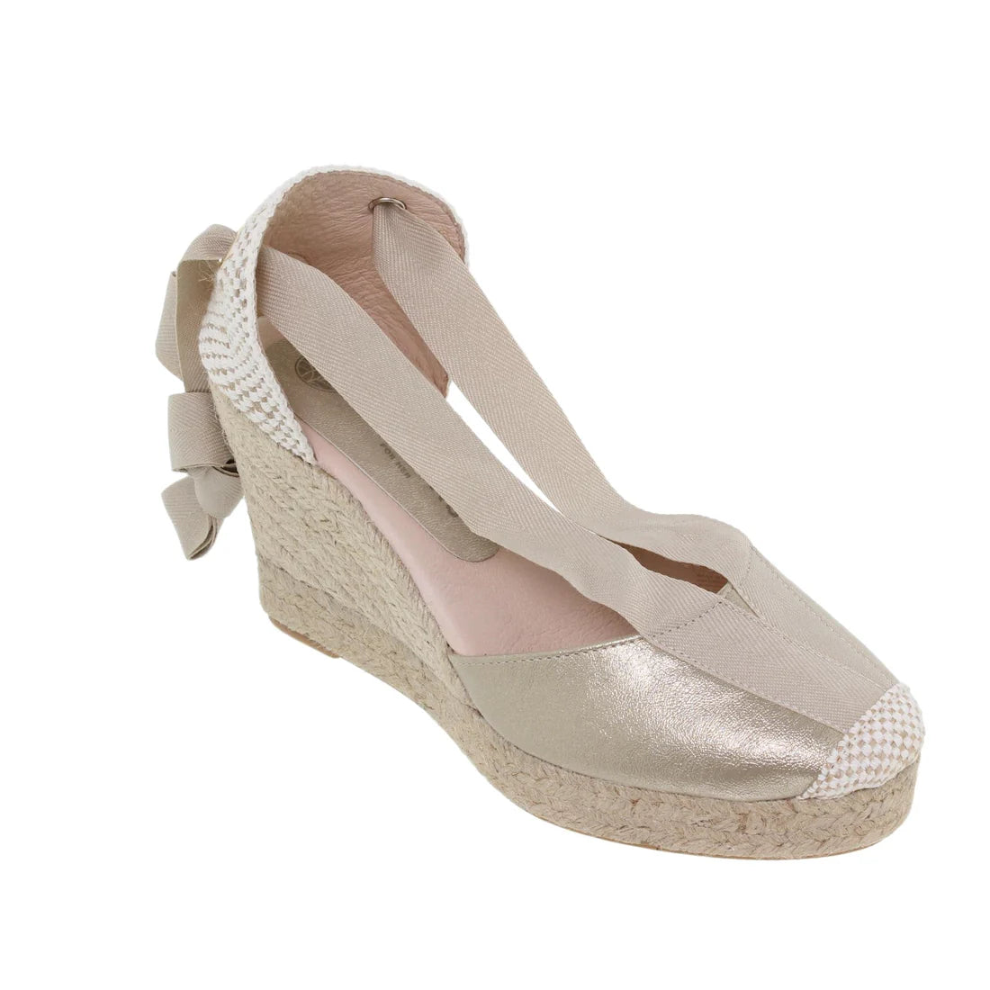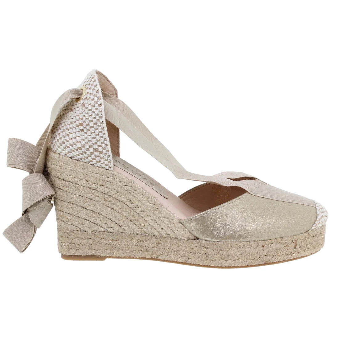 Sandalia Cuña Alpargatas de esparto Mujer Dorada - platino