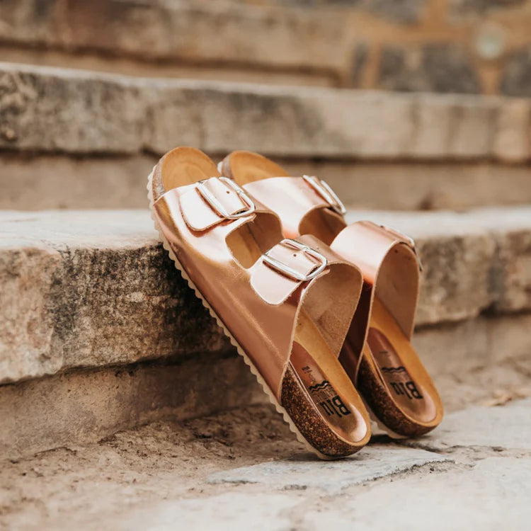 Sandalia de piel cómoda BIO 2 hebillas Bronce