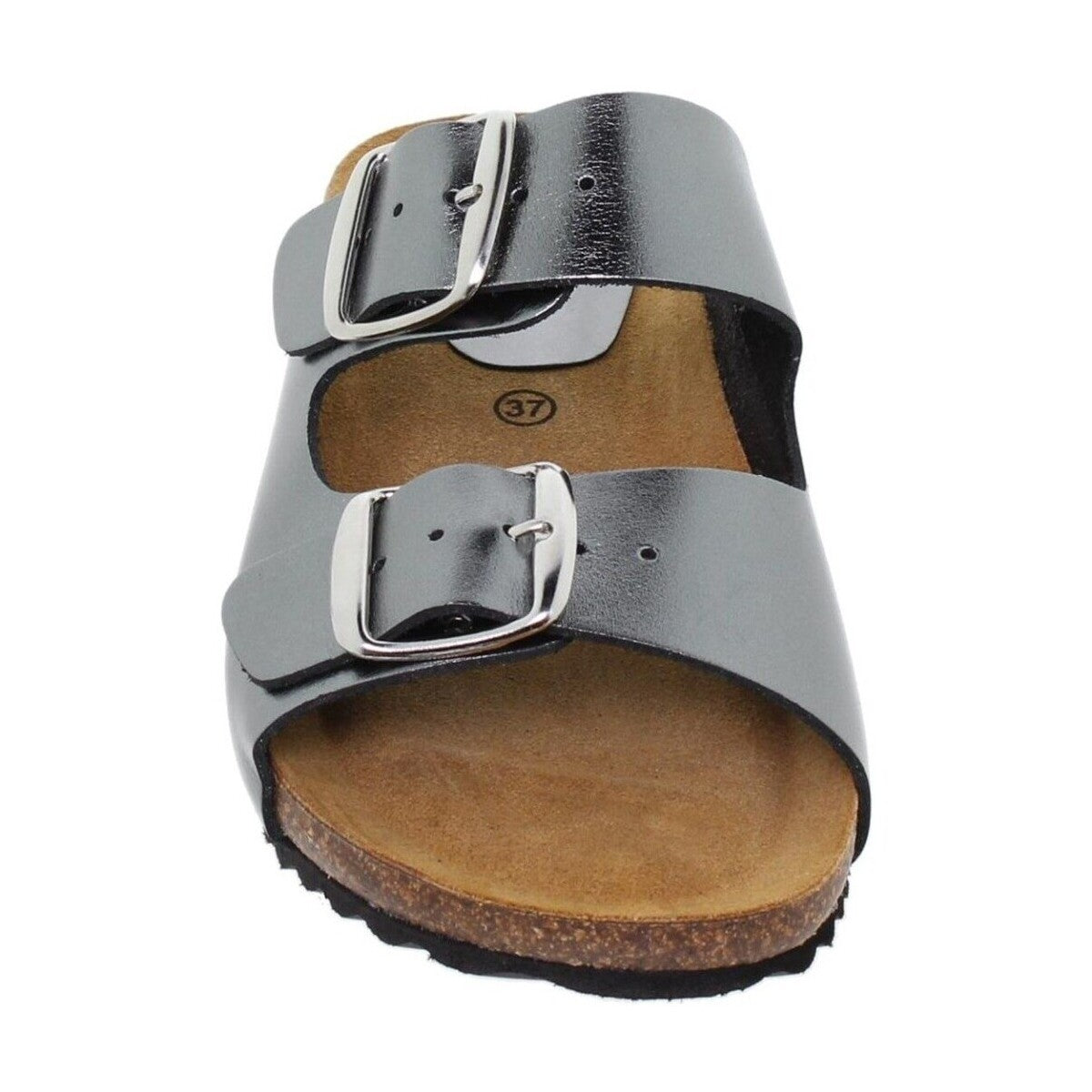 Sandalia de piel cómoda BIO 2 hebillas Plata Silver