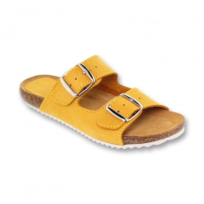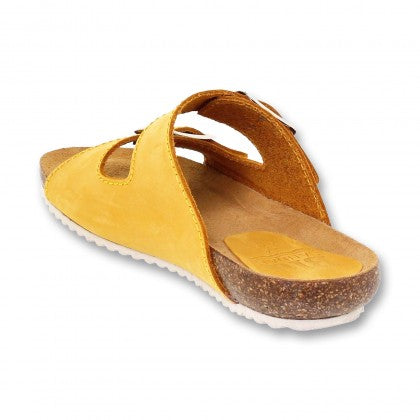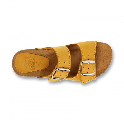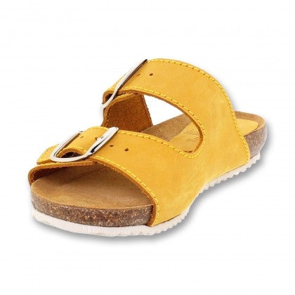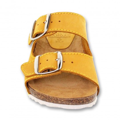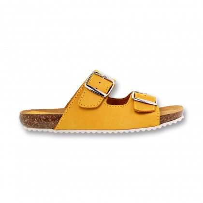 Sandalia de piel cómoda BIO 2 hebillas Mostaza