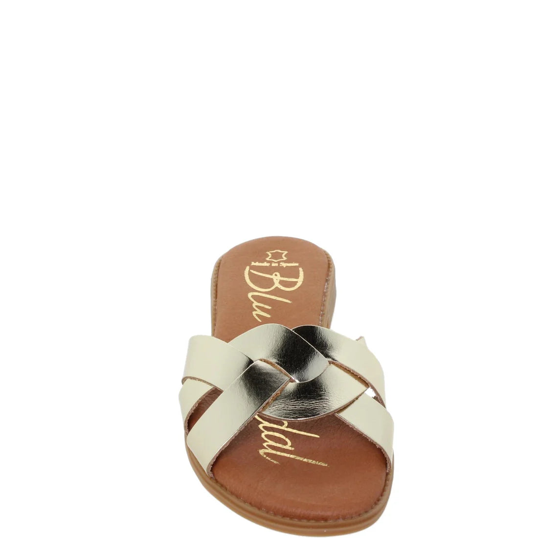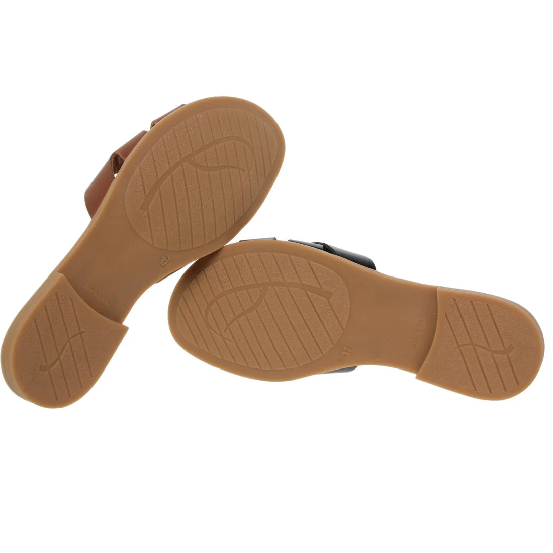 Sandalias planas de piel para mujer con pala de diseño minimalista. Un diseño elegante y atemporal para lucir este verano con tus looks más casual.