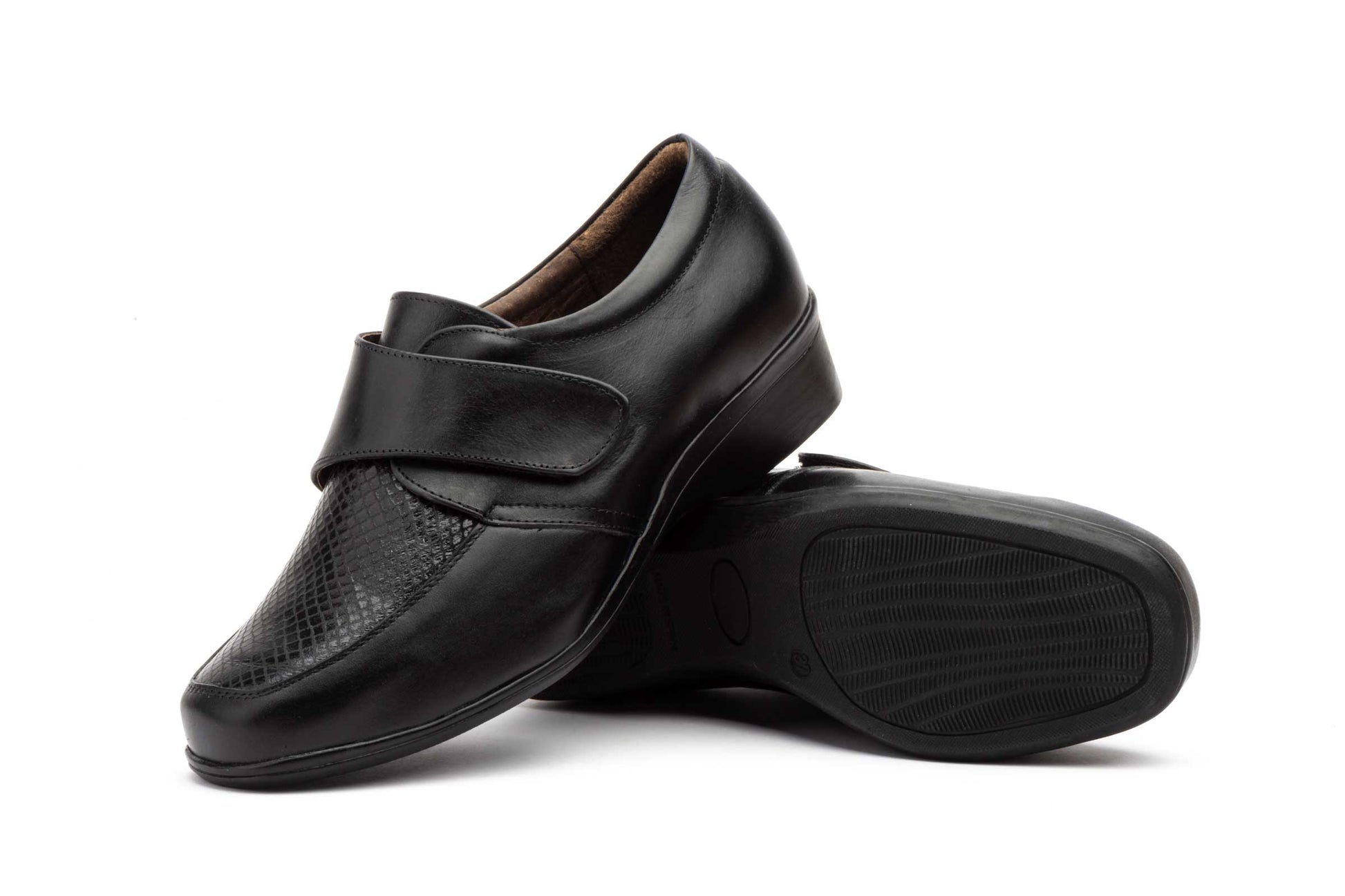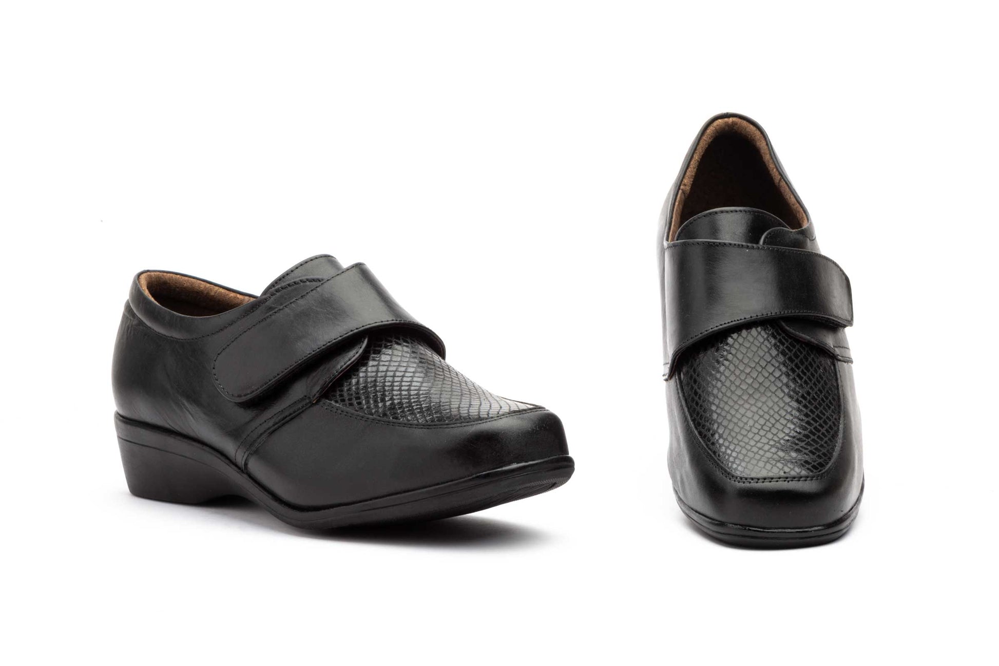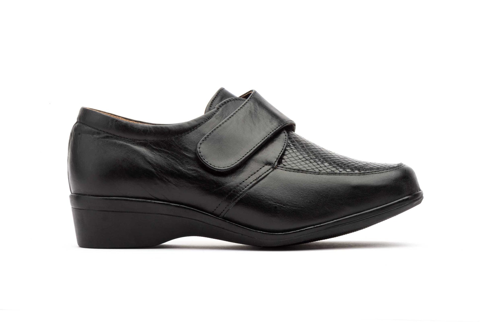 Zapatos Mujer Piel Negro Velcro Cuña