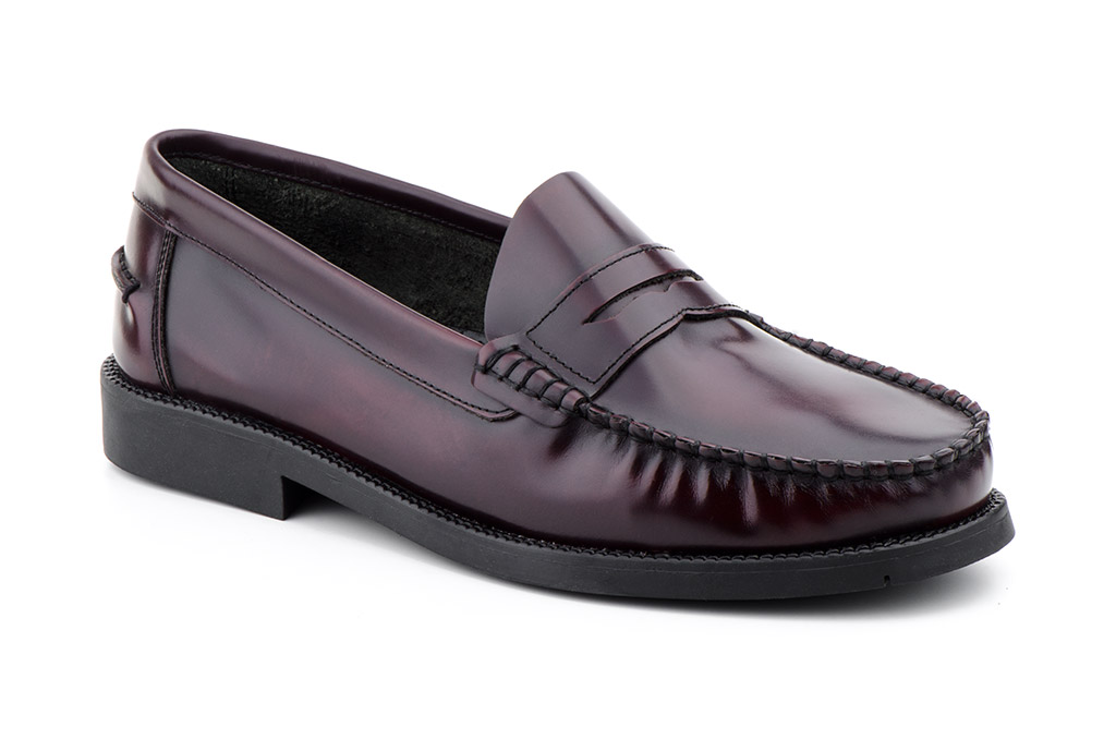 1000 Castellano para caballero en piel florentic de color burdeos, con antifaz y piso de goma ( hecho en España)