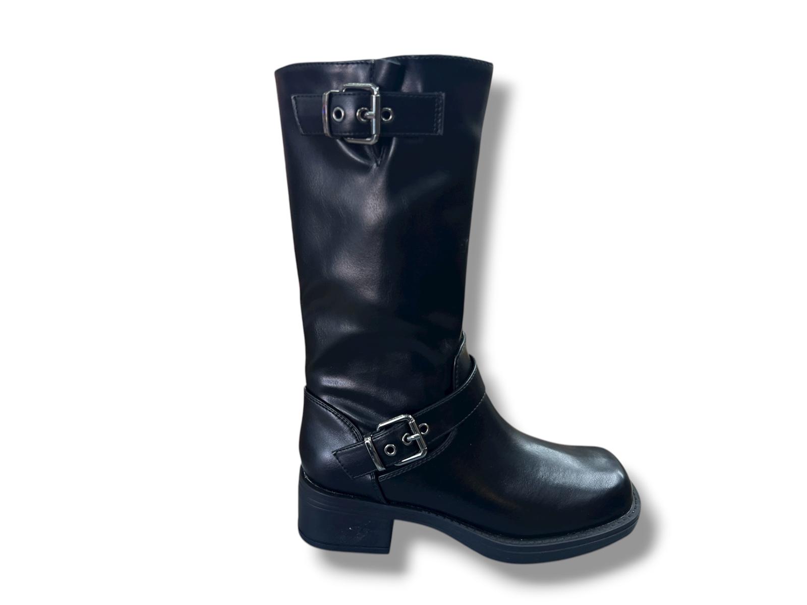 25317 Bota para señora tipo motorista con cremallera lateral de color negro