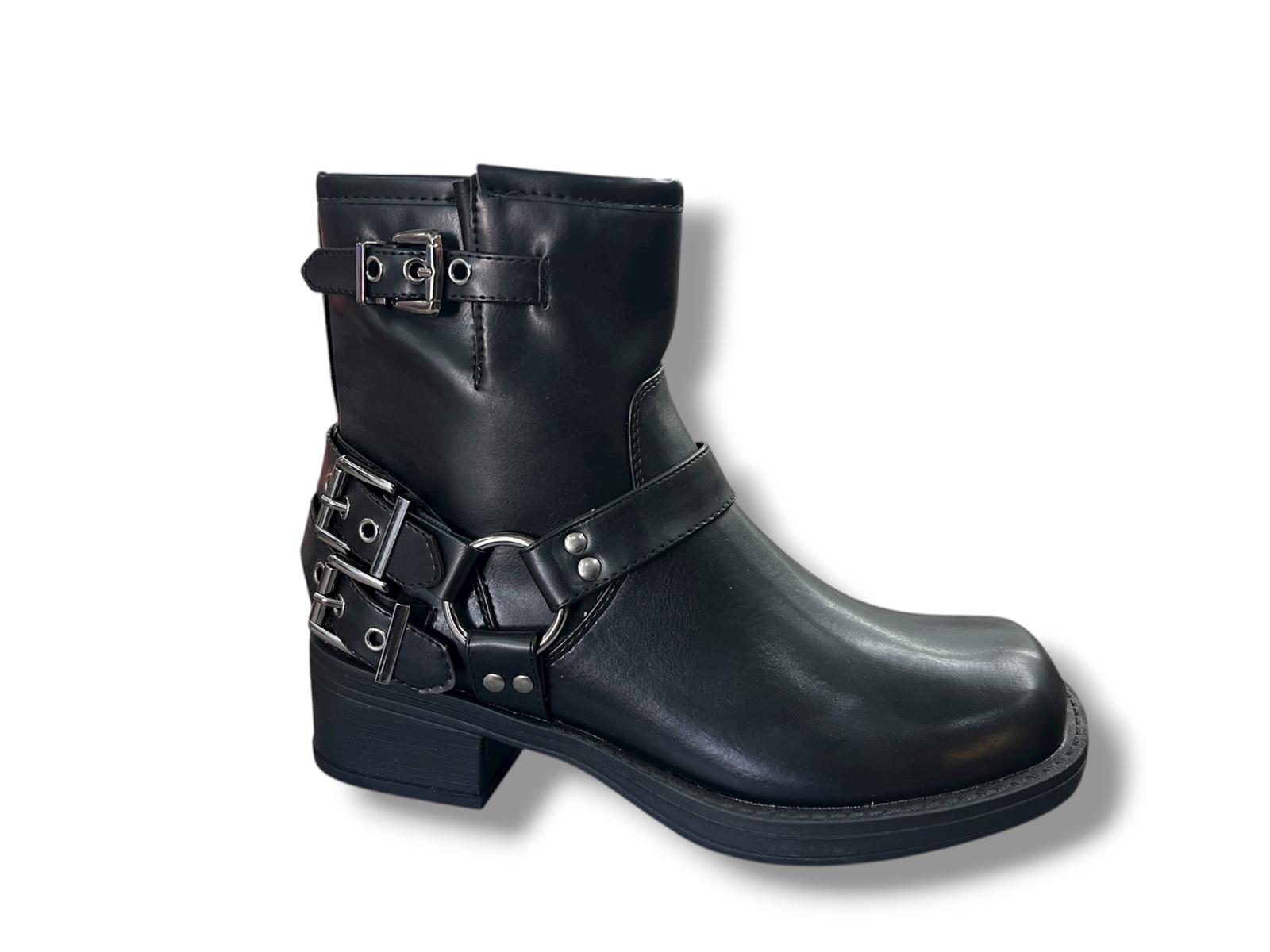 25319 Botín para señora tipo motorista con cremallera lateral de color negro