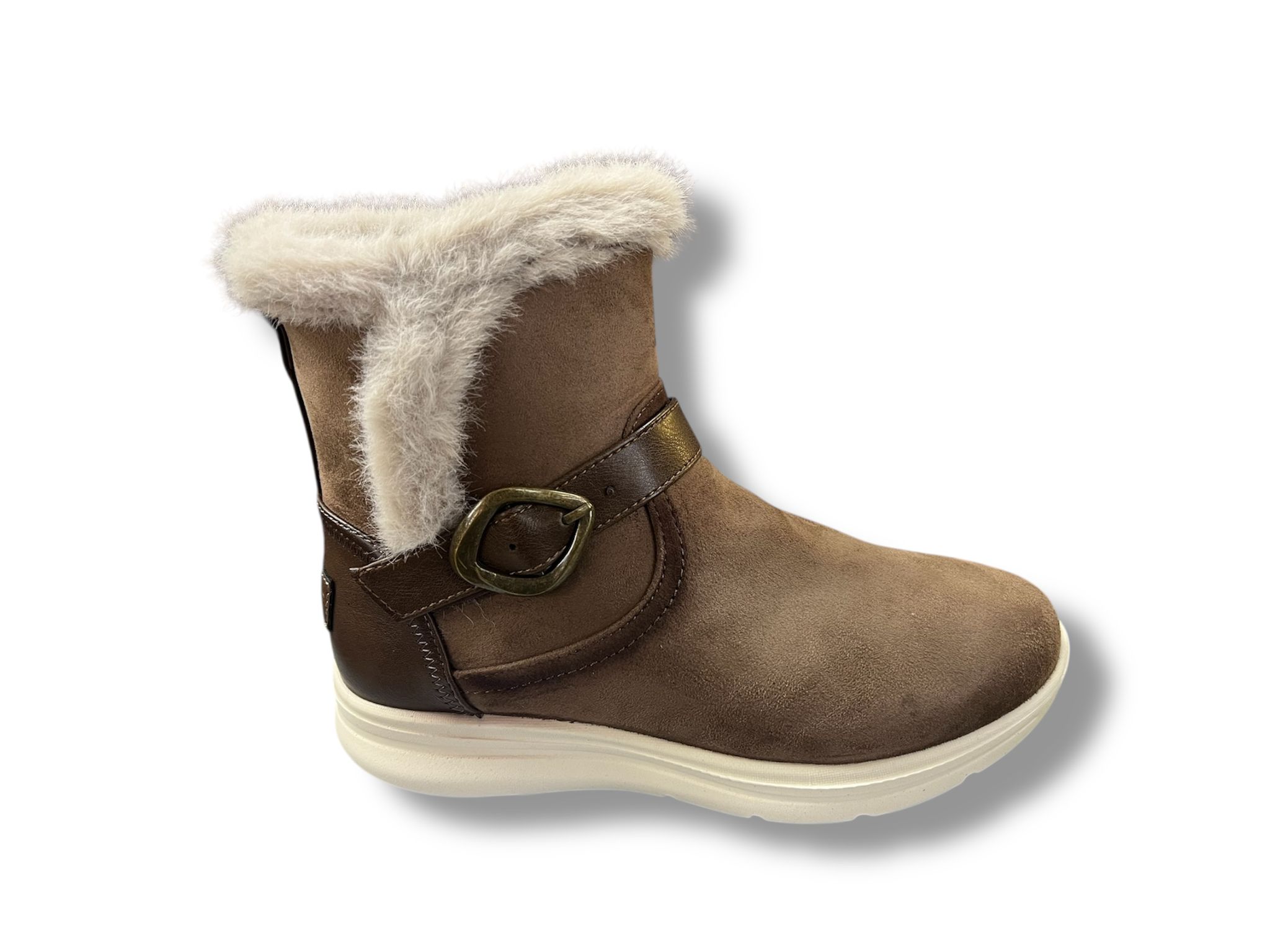 29431 Botín para señora plano tipo sport con cremallera lateral forrado de pelo en color marrón.