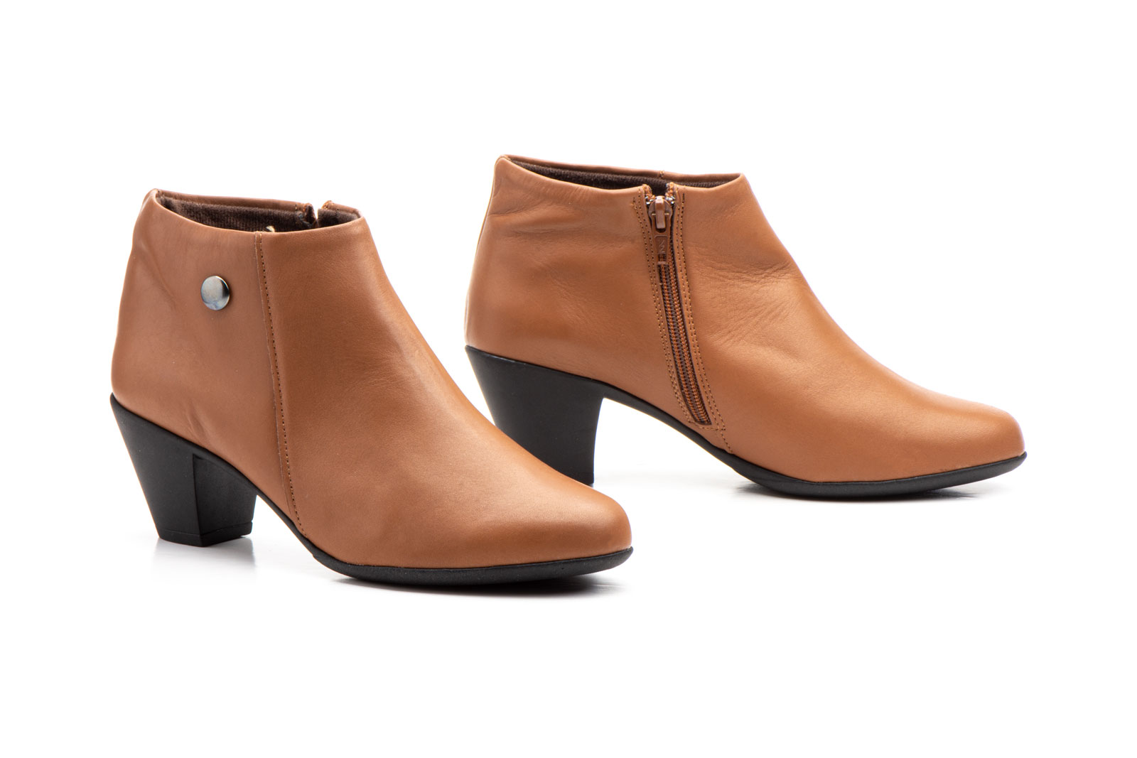 417 Botín para señora en piel con tacón y cremallera lateral de color cuero ( hecho en España)