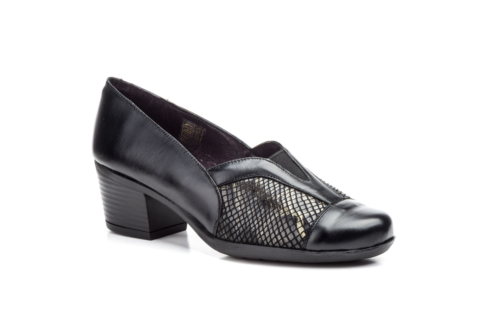 5414 Salón para señora confort en piel con tacón medio de color negro ( hecho en España)