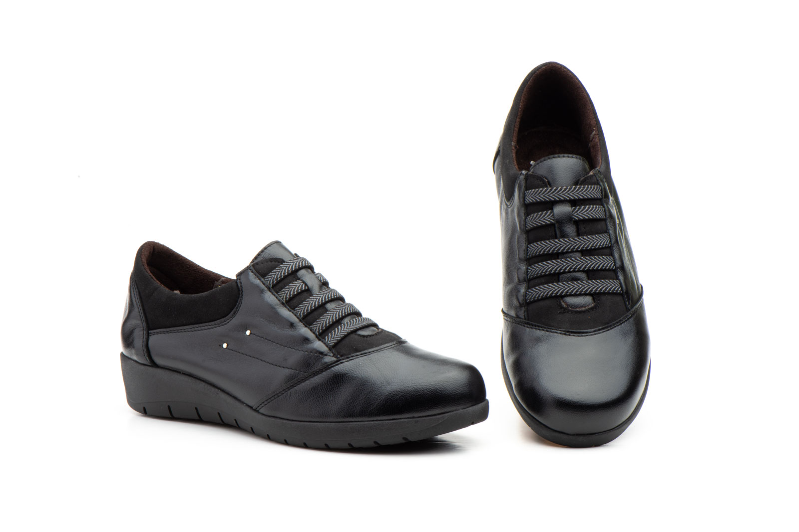 5567 Zapato para señora en piel de color negro con elásticos ( hecho en España)