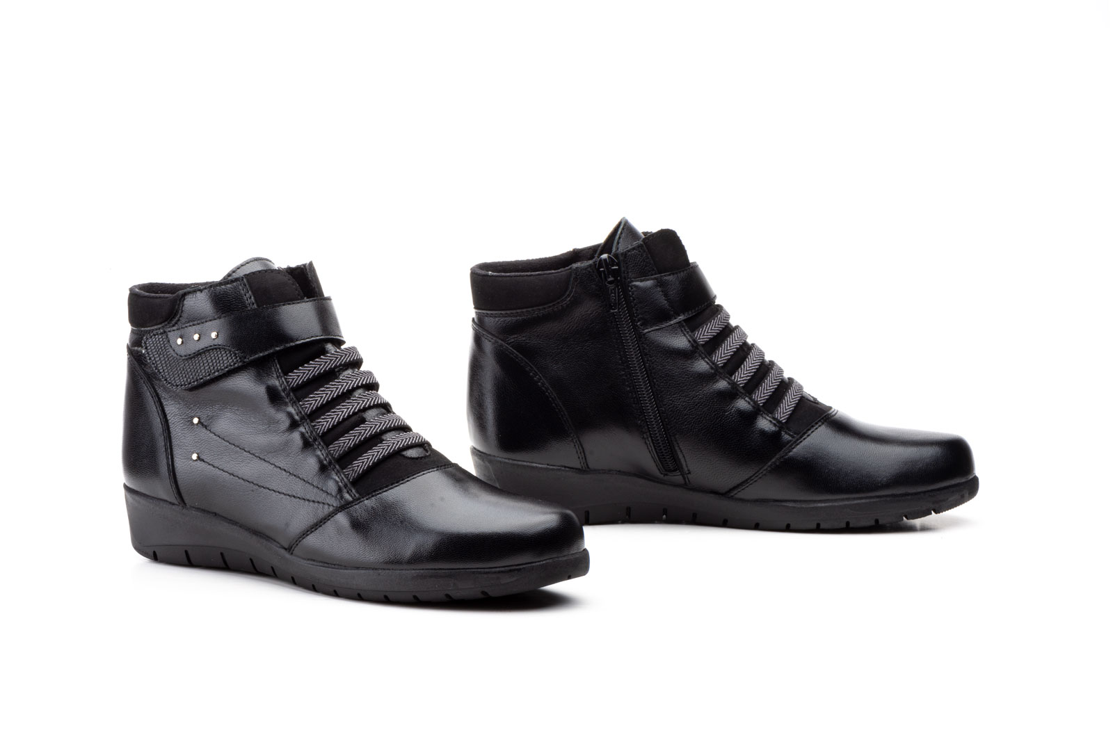 5681Botín para señora en piel con elásticos y velcro con cremallera lateral de color negro (hecho en España)