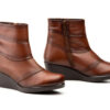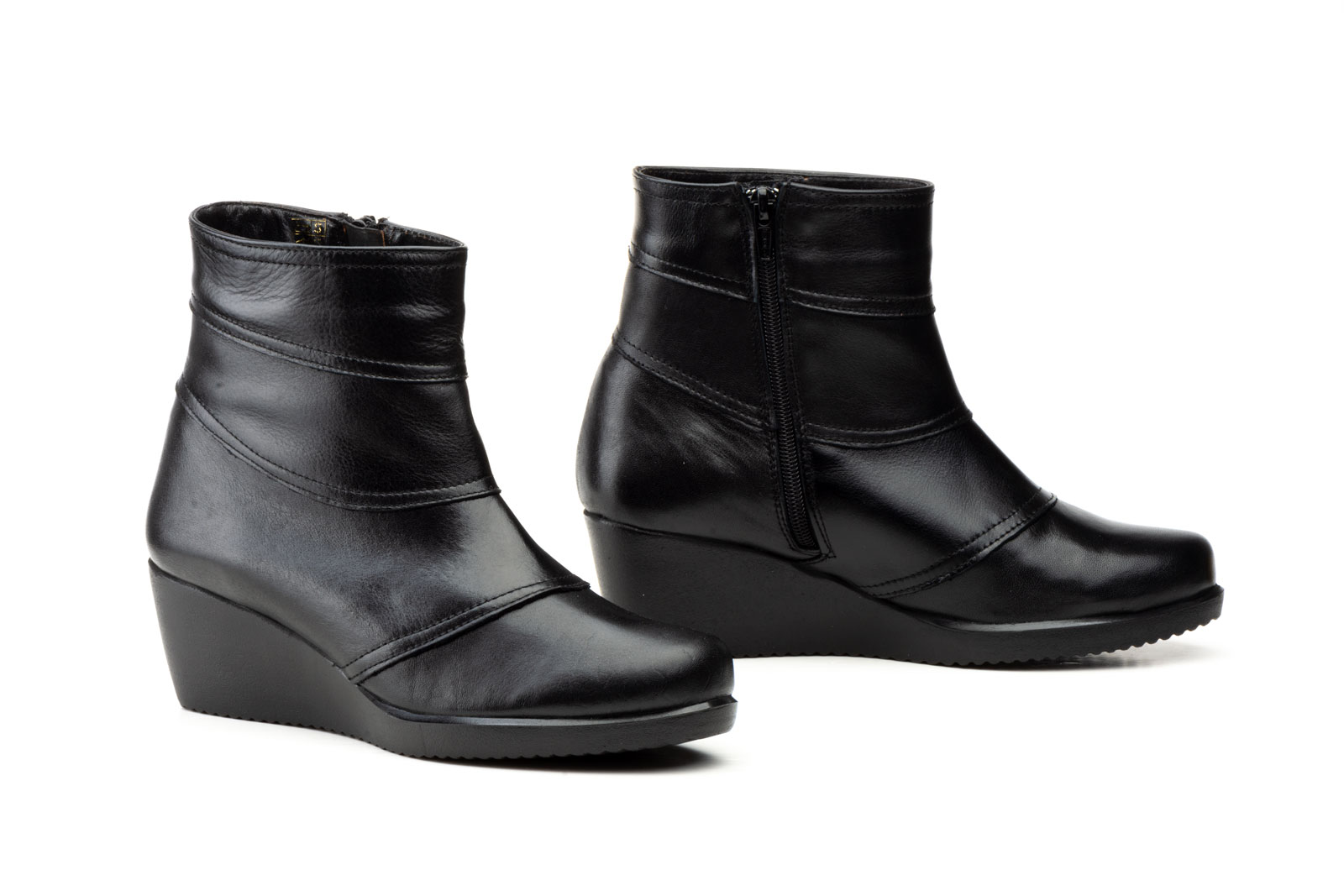 5682 Botín para señora en piel de color negro, con piso de cuña y cremallera lateral (hecho en España)