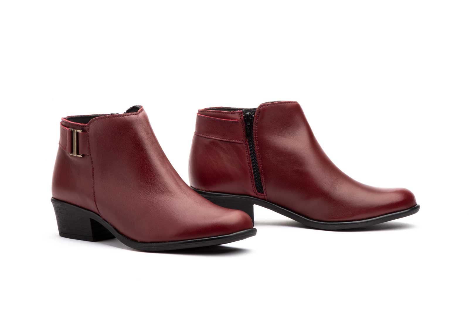 6300 Botín para señora en piel con tacón y cremallera lateral de color burdeos ( hecho en España)
