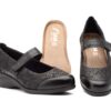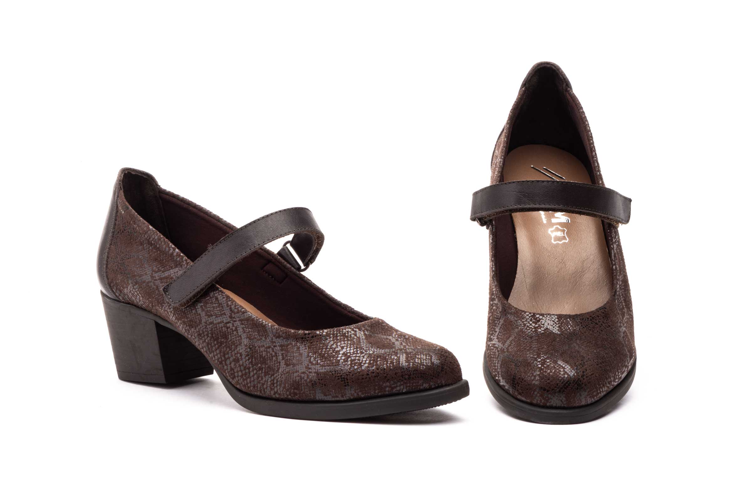 9132 Salón para señora confort en piel con tacón medio y correa de color marrón ( hecho en España)