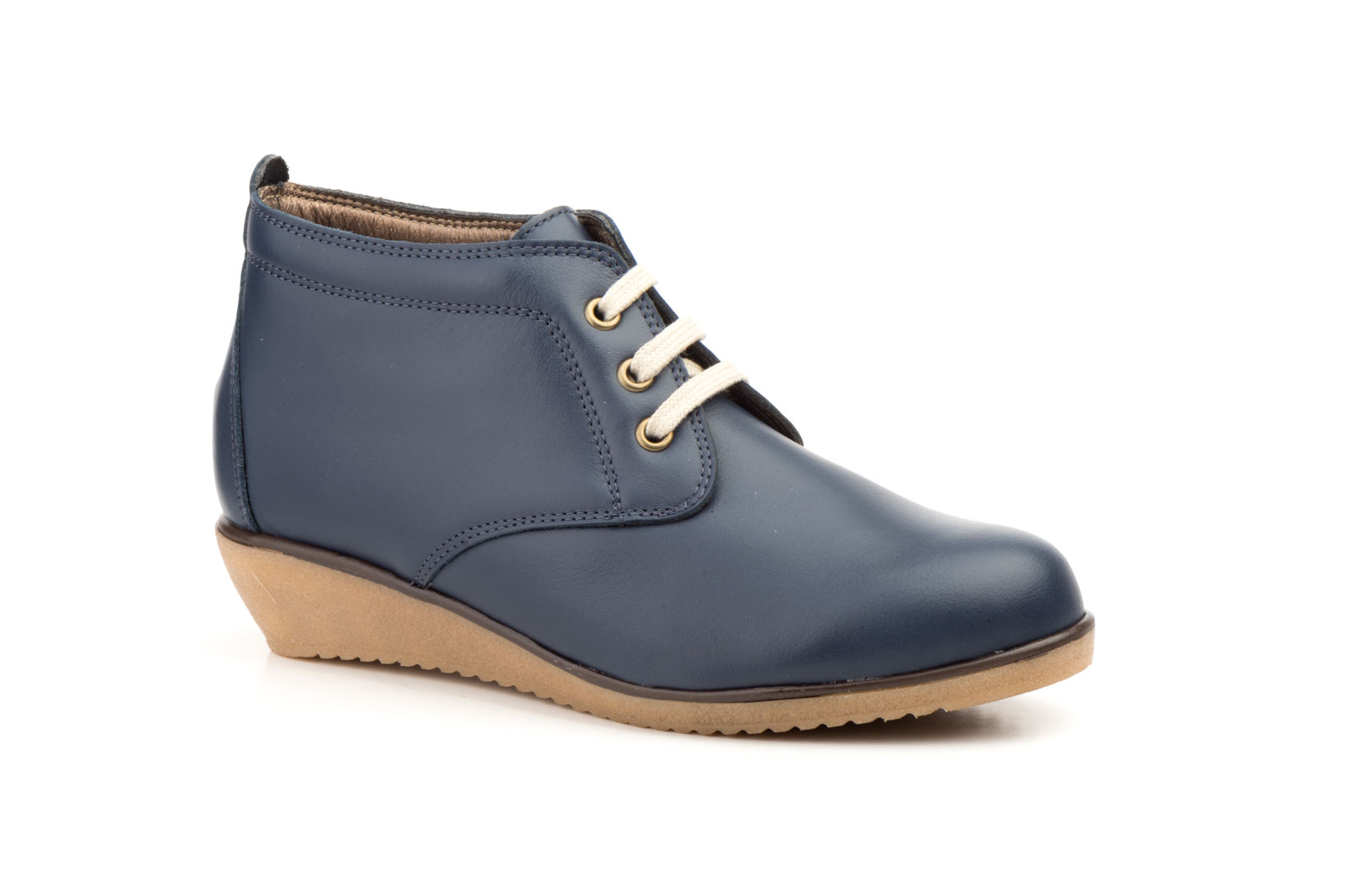 AE 398 Botín para señora en piel con cuña y cordones de color marino ( hecho en España)