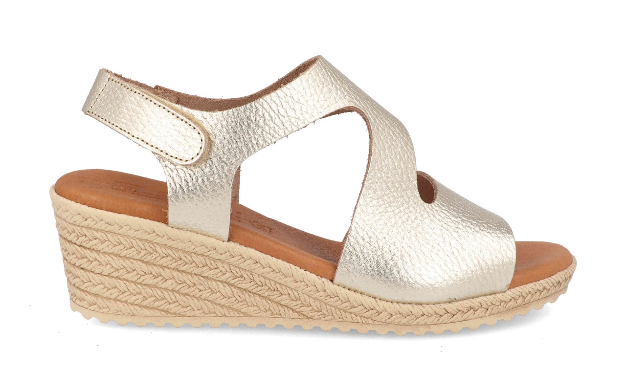 Sandalia de piel para mujer modelo 9925 con cuña de esparto y corte ergonómico